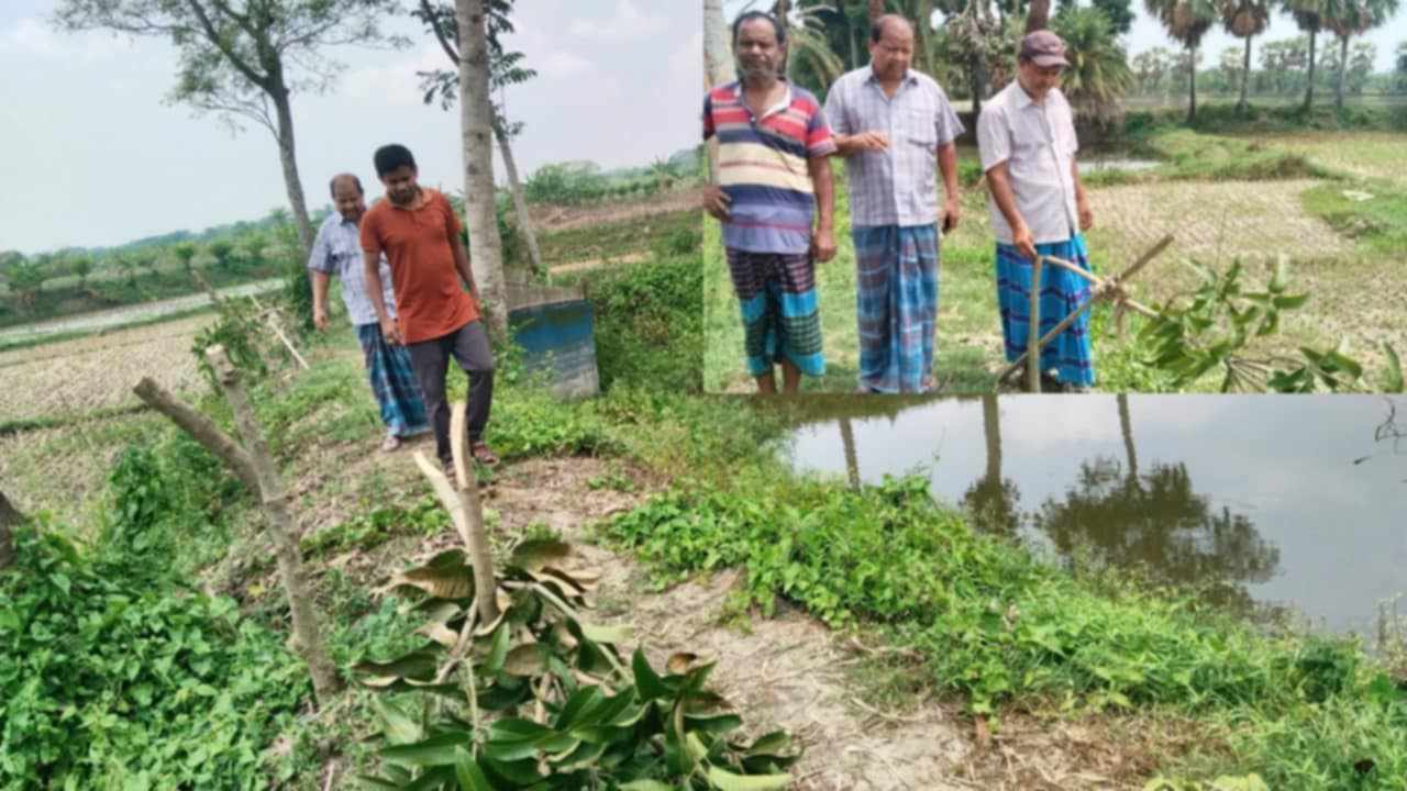 মূলক ভাবে মৎস্য ঘেরের ভেঁড়িতে লাগানো আমসহ বিভিন্ন প্রজাতির গাছ কেটে নিধন করার অভিযোগ করেছে একটি সংখ্যালঘু পরিবার।