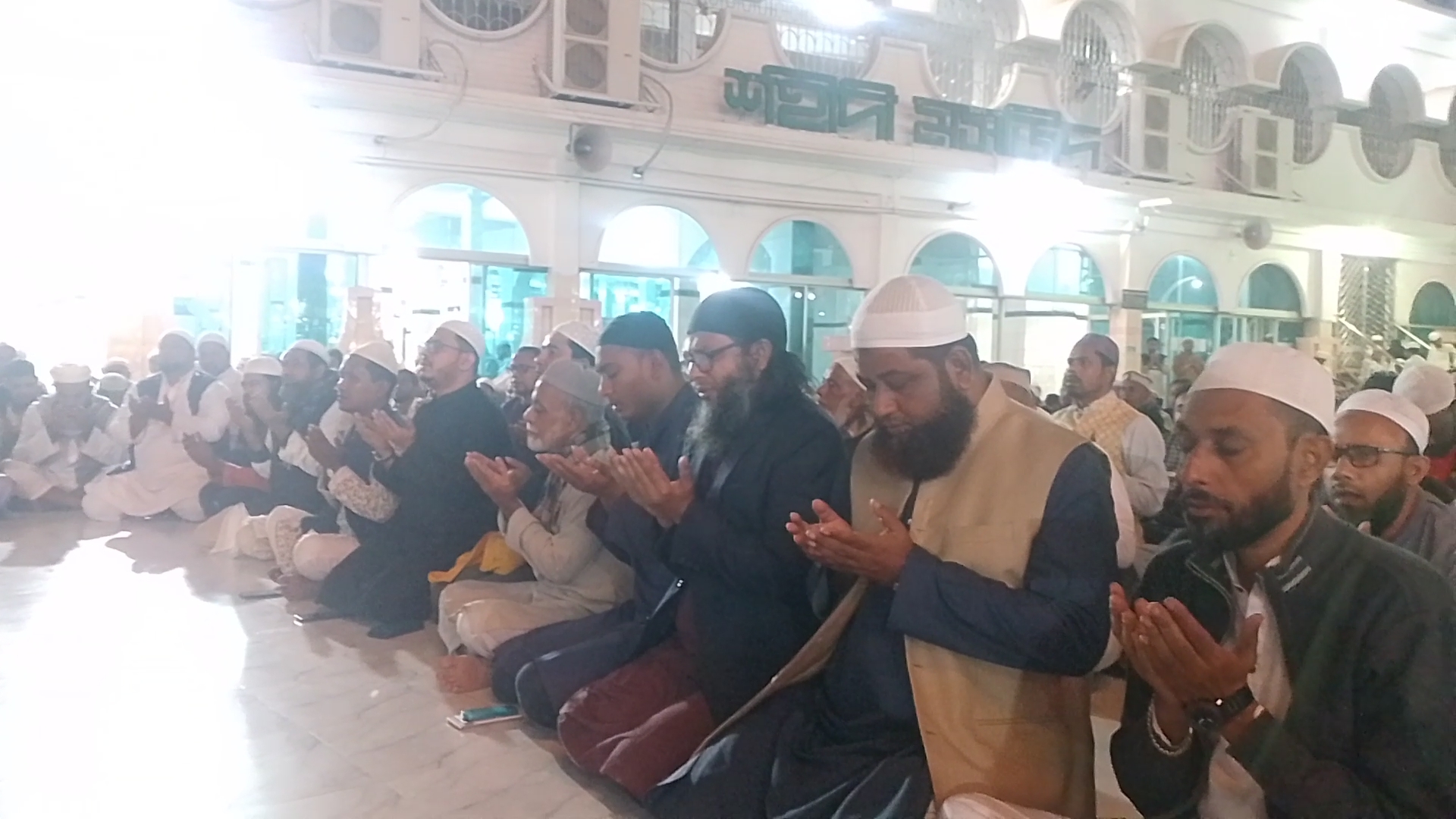 মোনাজাত পরিচালনা করেন কিশোরগঞ্জ নূরে এলাহী জামে মসজিদের খতিব হযরত মুফতি মাওলানা মো: হাসান জামীল ।
