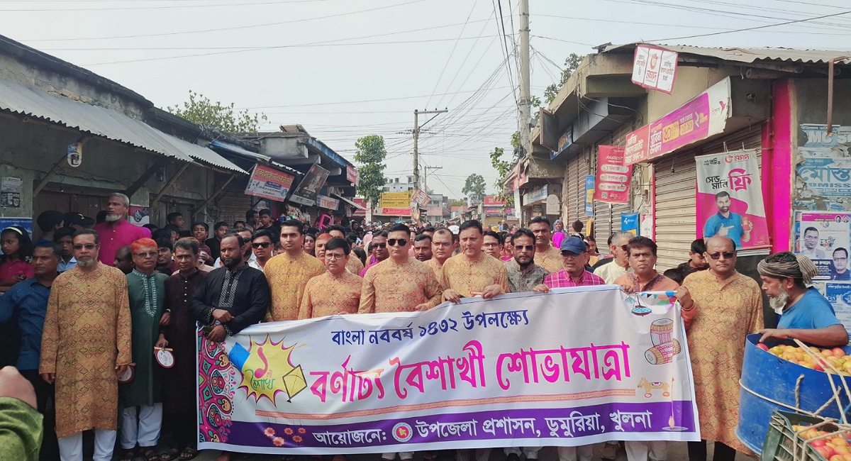 ডুমুরিয়া উপজেলা প্রশাসনের আয়োজনে সকাল ৯টায় প্রশাসনিক ভবনে সামনে থেকে একটি বিশাল শোভা যাত্রা বের করে ডুমুরিয়া বাজারে প্রধান প্রধান সড়ক প্রদক্ষিণ শেষে ডুমুরিয়া উপজেলা যুবসংঘ মাঠে শেষ হয়।