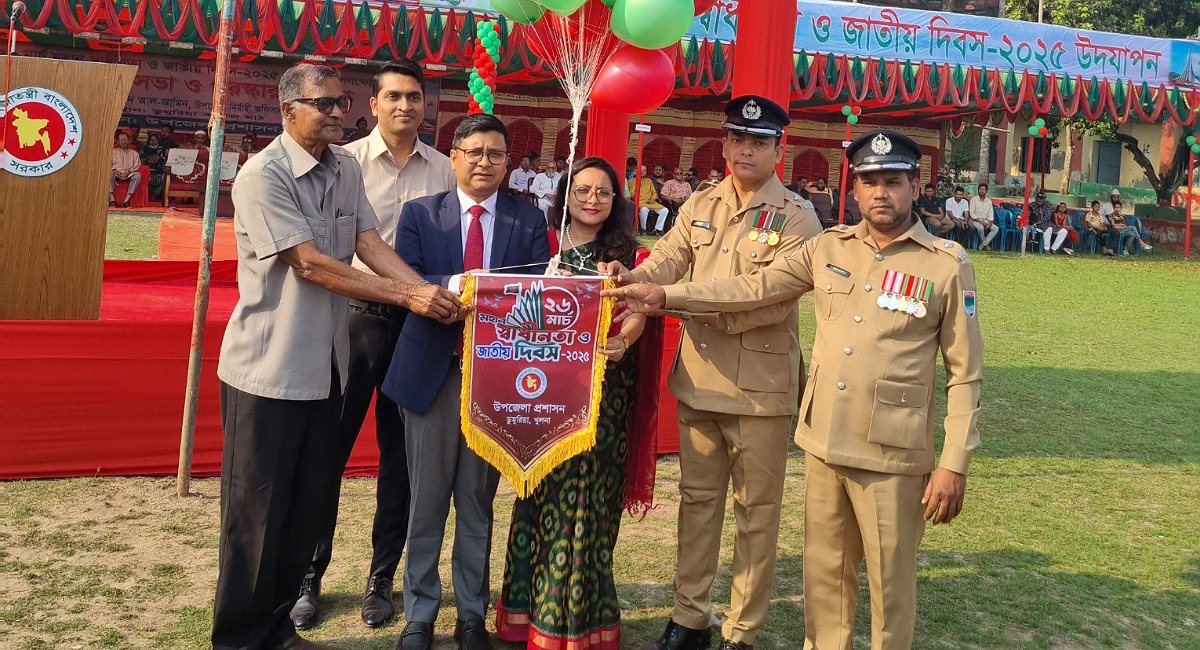 ডুমুরিয়া উপজেলা প্রশাসনের আয়োজনে ২৬মার্চ মহান স্বাধীনতা দিবস ও জাতীয় দিবস ২০২৫উদযাপন উপলক্ষে আলোচনা সভা ও পুরস্কার বিতরন অনুষ্ঠানে ডুমুরিয়া উপজেলা কলেজ মাঠে অনুষ্ঠিত সভায় সভাপতিত্ব করেন ডুমুরিয়া উপজেলা নির্বাহী অফিসার মুহাম্মদ আল আমিন।