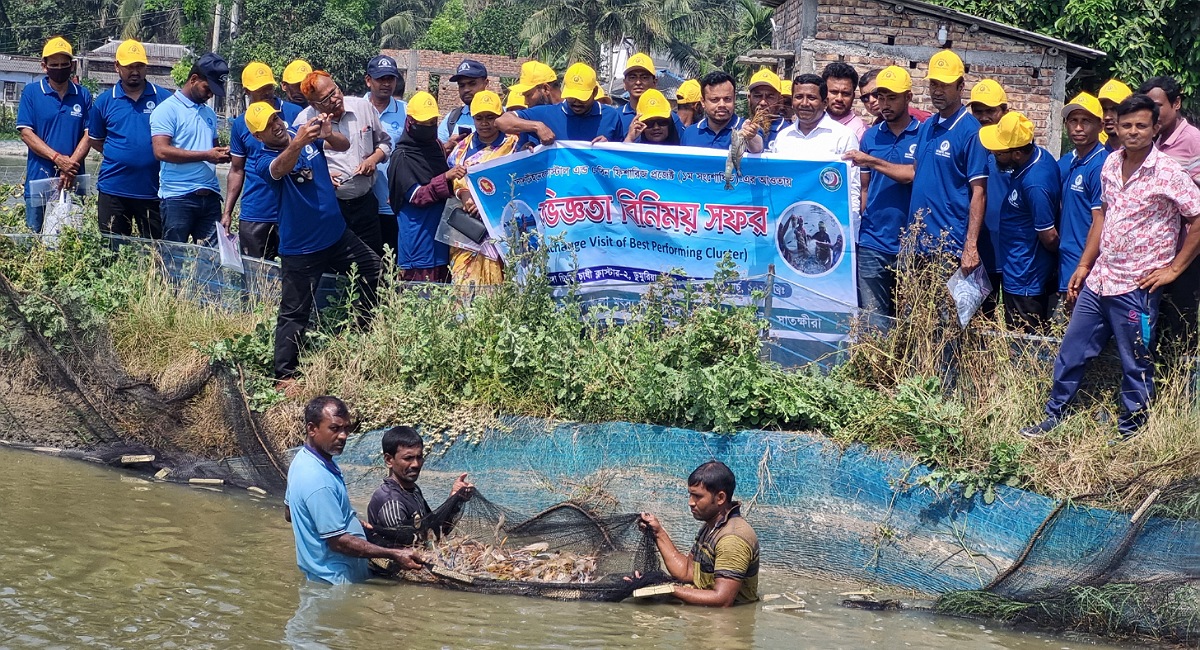 চাষিরা তাদের অভিজ্ঞতা বিনিময়ের জন্য ডুমুরিয়া উপজেলার বড়ডাঙ্গা চিংড়ি চাষি ক্লাস্টার-২ পরিদর্শন করেন। অভিজ্ঞতা বিনিময় সফরে উভয় ক্লাস্টারের চাষীদের মধ্যে বিভিন্ন তথ্য-উপাত্ত নিয়ে ব্যাপক আলোচনা ও প্রশ্নোত্তর পর্ব অনুষ্ঠিত হয়। এ সময় গত বছর স্বর্ণ পদক প্রাপ্ত চাষি মো: তবিবুর রহমান জোয়াদ্দারসহ আধা নিবিড় চিংড়ি চাষি নিত্যানন্দ মন্ডল, অভিজিৎ বিশ্বাস ও সফল ক্লাস্টার লিডার শেখ মাহতাব হোসেন বক্তব্য রাখেন।