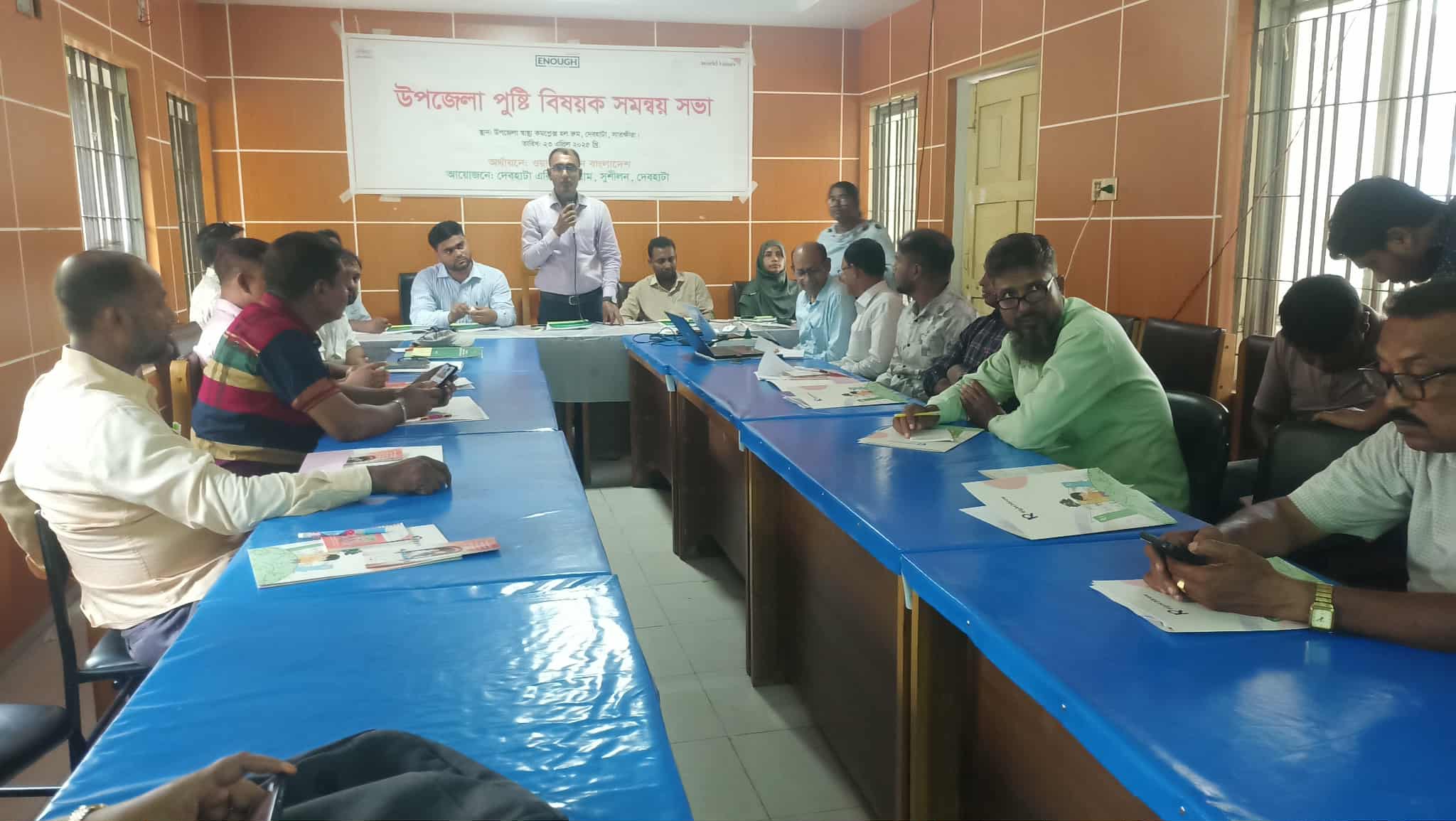 সভায় জানানো হয়, সরকারী ২২টি দপ্তরের সমন্বয়ে গঠিত পুষ্টি কমিটির মাধ্যমে সকল মানুষের পুষ্টি নিশ্চিতে কাজ করা হচ্ছে। খাদ্য উৎপাদন, খাদ্যের নিরাপত্তা, নির্দিষ্ট পরিমানে খাওয়া, শিশুদের খাদ্য গ্রহনে সতর্কতা অবলম্বন গ্রহনের সাথে সাথে প্রত্যক্ষ ও পরোক্ষ পুষ্টি বিষয়ে বিষদ আলোচনা করা হয়।