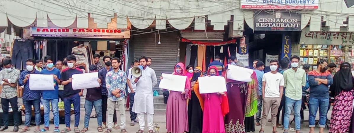 মানববন্ধনে বক্তব্য রাখেন জাতীয়তাবাদী গার্মেন্টস শ্রমিক দলের নেতা, সালাউদ্দিন প্রিন্স, সাদিয়া, লীজা, সুমন, হামিদুর রহমান ও ফিরোজ হাওলাদার প্রমূখ।