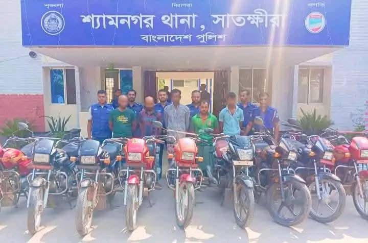 গ্রেফতারকৃত আসামী হলো, কালিগঞ্জ থানার কাকশিয়ালী গ্রামের মৃত্যু হাসান গাজীর ছেলে সালাউদ্দিন গাজী (৩৮), শ্যামনগর থানার চিংড়িখালী গ্রামের আরশাদ আলী গাজীর পুত্র আবু বক্কর সিদ্দিক গাজী(৫৫),একই উপজেলার গাবুরা গ্রামের ইউনুস আলী গাজীর ছেলে মোস্তাফিজুর রহমান নান্নু(৩৫), একই গ্রামের গফুর গাজীর ছেলে আতিকুর রহমান সাজু(৩৮), ৯ নং সোরা গ্রামের ছাকাত গাজীর ছেলে শাহাজাহান গাজী(৩৫), সর্ব থানা-শ্যামনগর , জেলা-সাতক্ষীরা গ্রেফতারকৃত আসামীগণের বিভিন্ন তথ্যে আসামী সালাউদ্দিন গাজী শ্যামনগর থানা এলাকা হতে সু-কৌশলে মোটরসাইকেল চুরি করিয়া অপর সহযোগী আসামীগণের মাধ্যমে বিভিন্ন স্থানে বিক্রয় করে।