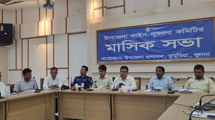 ডুমুরিয়া উপজেলা প্রশাসনের আয়োজনে খুলনার ডুমুরিয়ায় আইন-শৃঙ্খলা কমিটির মাসিক সভা অনুষ্ঠিত হয়েছে। মঙ্গলবার ২৭মে সকাল সাড়ে ১০টায় উপজেলা কমপ্লেক্স সম্প্রসারিত প্রশাসনিক ভবনে এ সভার আয়োজন করা হয়। উপজেলা নির্বাহী