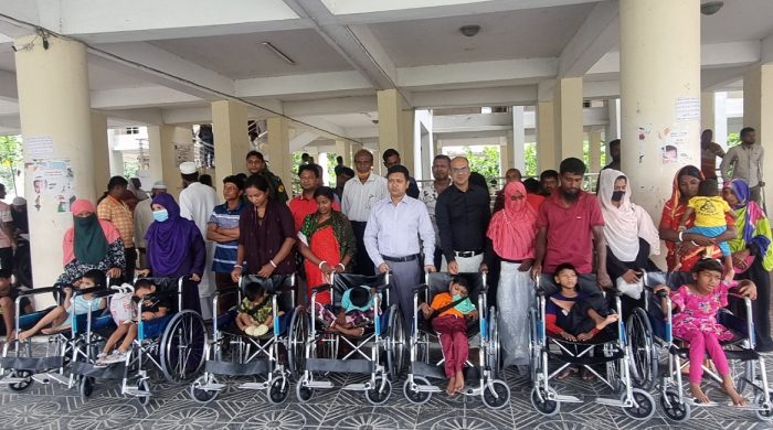 খুলনার ডুমুরিয়া উপজেলায় অস্বচ্ছল প্রতিবন্ধীদের মাঝে হুইল চেয়ার , বাইসাইকেল, ও সেলাই মেশিন বিতরণ করলেন ডুমুরিয়া উপজেলা প্রশাসক। জানা গেছে অস্বচ্ছল প্রতিবন্ধীদের মাঝে ২০ টি হুইলচেয়ার বিতরণ করা হয়েছে।