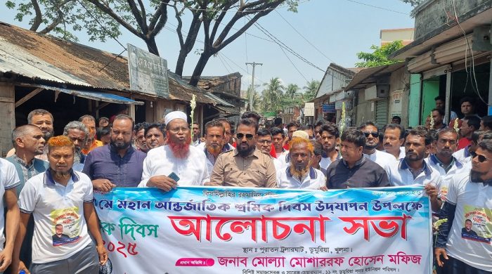 শুক্রবার বিকাল ৩টায় ডুমুরিয়া বাস- স্ট্যান্ডে এক প্রতিবাদ সভা ও বিক্ষোভ মিছিল মুশতাক আহমেদের সভাপতিত্বে অনুষ্ঠিত সভায় বক্তব্য দেন মুফতি আব্দুল কাইউম জমাদ্দার, মাওলানা আব্দুর রহমান,মাওলানা মুজিবুর রহমান, মাওলানা আবু