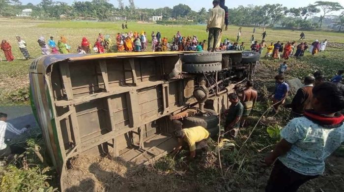 খুলনার ডুমুরিয়া উপজেলায় সড়ক দুঘটনায় এক যুবকের মৃত্যু ও ৫ জন গুরুতর আহত হয়েছে। রোববার সকাল ১০ টা ২০ মিনিটে উপজেলার চাকুন্দিয়া এলাকায় এ ঘটনাটি ঘটে। মৃত যুবক হলেন,
