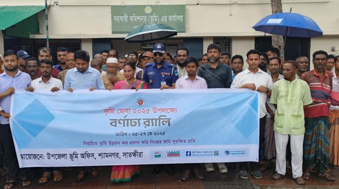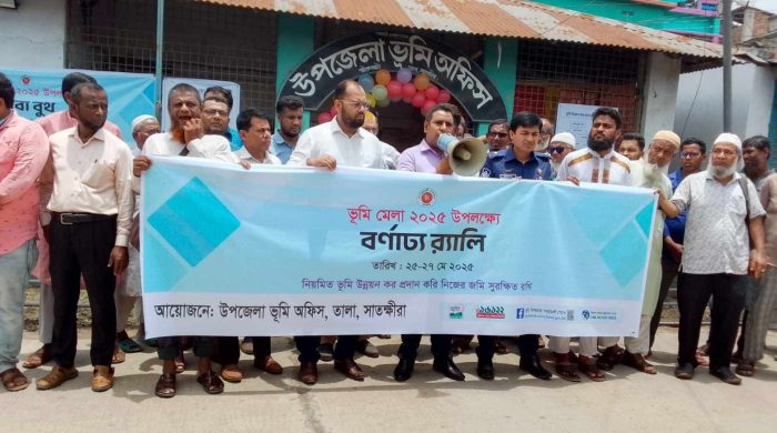 ভূমি মেলা উপলক্ষে রবিবার সকাল ১০ টায় সাতক্ষীরা তালা উপজেলার ভূমি অফিসের সামনে ভূমি মেলা ২০২৫ উপলক্ষে এক বনাঢ্য র্যালি অনুষ্ঠিত হয়েছে। র্যালীটি ভূমি অফিসের সামনে থেকে শুরু করে
