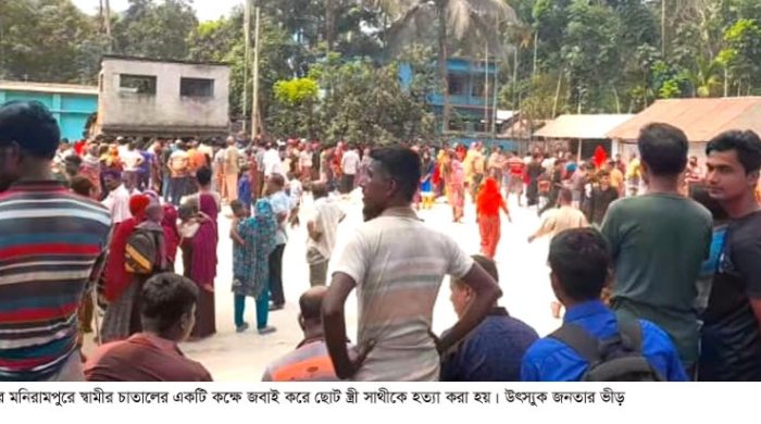 মণিরামপুরে ছোট স্ত্রী স্বরুপ জাহান সাথীকে জবাই করে হত্যার পর বড় স্ত্রীসহ স্বামী আবদুর রশিদ মিটু পালিয়ে গেছে। নৃশংস এ হত্যাকান্ডের ঘটনা ঘটেছে রোববার গভীর রাতে উপজেলার খাটুয়াডাঙ্গা গ্রামে স্বামীর