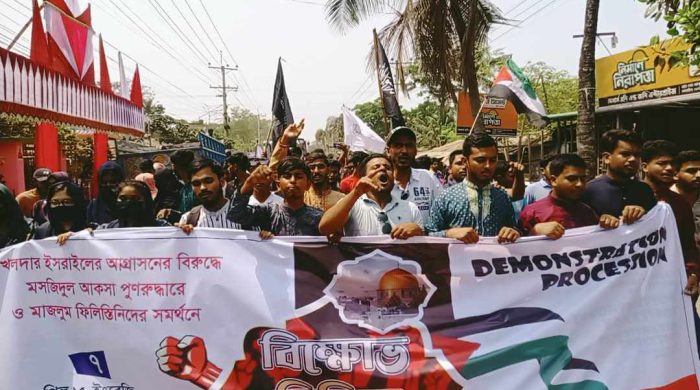 ফিলিস্তিনে মুসলিমদের ওপর ইসরায়েলের বর্বর হামলা ও মোদি সরকারের মদদে ভারতীয় মুসলিম নির্যাতনের প্রতিবাদে বিক্ষোভ মিছিল ও সমাবেশ করেছেন তালা উপজেলার পাটকেলঘাটার সর্বস্তরের তৌহিদী জনতা। সোমবার (৭ এপ্রিল )