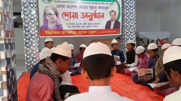 বিএনপি চেয়ারপারসনের আরোগ্য কামনায় ইঞ্জিনিয়ার আইয়ুব হোসেনের উদ্যোগে ধর্মীয় অনুষ্ঠান সাতক্ষীরা প্রতিনিধি ॥ বিএনপির চেয়ারপারসন ও বাংলাদেশের তিনবারের সাবেক প্রধানমন্ত্রী, আপোষহীন দেশনেত্রী বেগম খালেদা জিয়ার দ্রুত সুস্থতা কামনায় সাতক্ষীরায় দোয়া